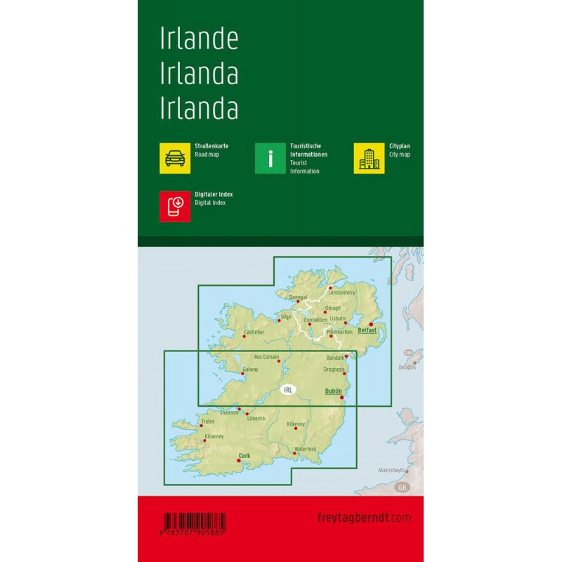 Neben der übersichtlichen Gestaltung verfügt die Straßenkarte Irland 1:350.000 über zahlreiche Zusatzinformationen wie z.B. Straßenbeschaffenheit, Sehenswürdigkeiten, Campingplätze und diverse Innenstadtpläne. Mit dem umfangreichen Ortsregister gelingt zudem eine rasche Orientierung. Touristische Informationen, Ortsregister, Citypläne von Belfast, Cork, Dublin, Galway, Limerick, Waterford, doppelseitig.