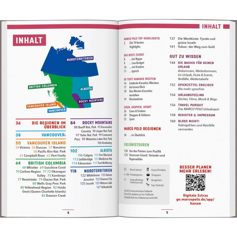 Mit dem MARCO POLO Reiseführer hast du alle Regionen in Kanadas Westen im Überblick: Rund um Vancouver und Vancouver Island, über British Columbia bis in die Nordterritorien, von den Rocky Mountains bis nach Alberta. Einmal vor Ort verpasst du mit den MARCO POLO Erlebnistouren keine der Besonderheiten der Region!