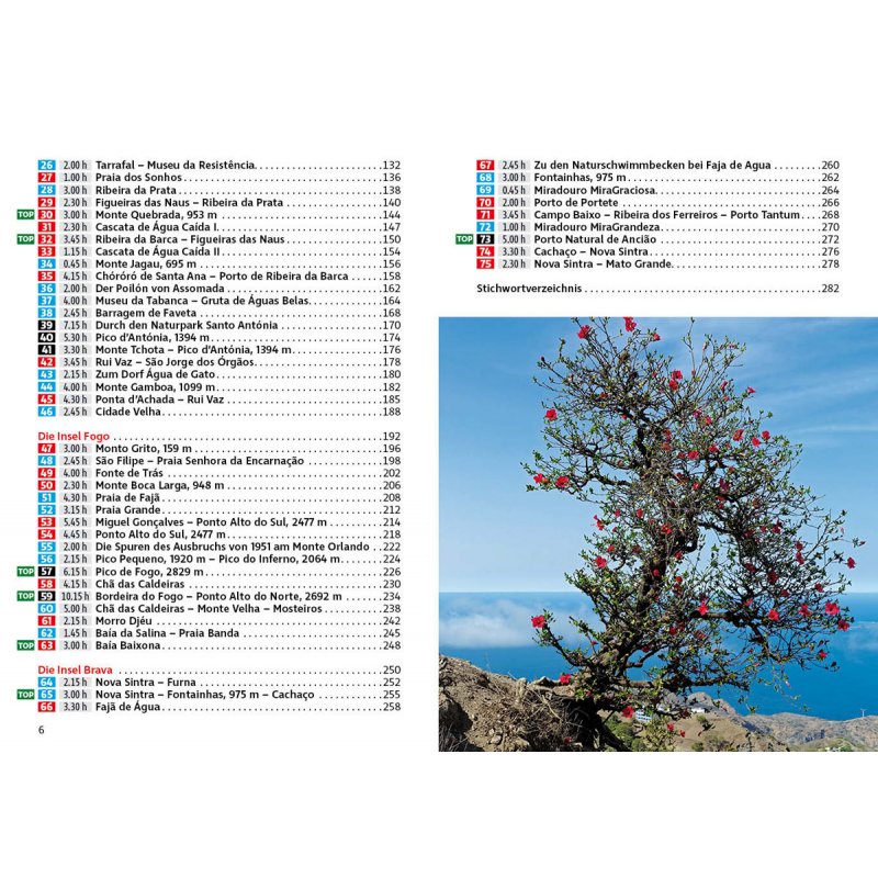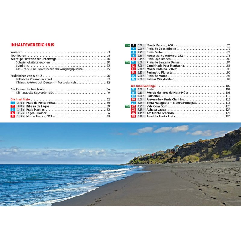 Auf Maio führen einsame Wanderungen zu kilometerlangen weißen Stränden und abgelegenen Buchten. Spektakulär ist die Insel Fogo mit dem knapp 3000 Meter hohen Vulkan Pico de Fogo und einer Mondlandschaft aus Lavaströmen, Vulkankegeln und schwarzen Lapillifeldern. Santiago, die größte Insel und Sitz der Hauptstadt Praia, bietet neben herrlichen Wandermöglichkeiten auch Einblicke in die Geschichte der Kapverden. Und auf der »Blumeninsel« Brava ziehen zahlreiche Maultierpfade kreuz und quer durch das Hochland – genügend Stoff für einen gelungenen Wanderurlaub!