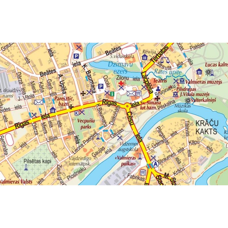 - Mit Stadtplan von Aluksne, Balvi, Gulbene, Jekabpils, Ludza, Madona, Rezekne (Rossiten), Smiltene, Valmiera (Wolmar).
