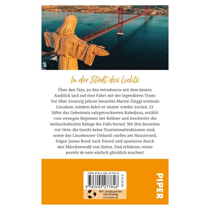 Martin Zinggl, der seit über zwanzig Jahren immer wieder nach Lissabon zurückkehrt, nimmt uns mit über den Tejo, zu den miradouros mit dem besten Ausblick und auf eine Fahrt mit der legendären Elektrotram 28E. Er lüftet das Geheimnis salzgetrockneten Kabeljaus, erzählt vom strengen Regiment der Kellner und beschwört die Klänge des Fado herauf. Mit ihm entdecken wir Orte, die (noch) keine Touristenhotspots sind, surfen am Hausstrand, besuchen Estoril und spazieren durch den Märchenwald von Sintra. Und erfahren, wieso pastéis de nata einfach glücklich machen.