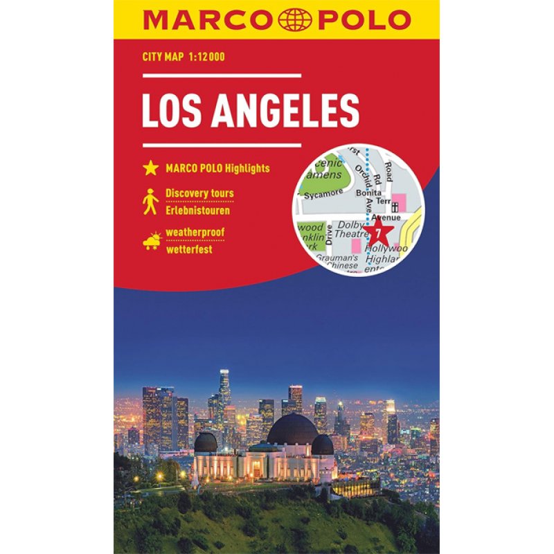 Hauptkarte 1:12 000 mit mehrsprachiger Legende (D, I, GB, F, P, E, CZ, PL) - Highlights - Liniennetzplan Los Angeles; Auf der Rückseite: -Städtetouren mit Highlights - Praktische touristische Informationen - Straßenverzeichnis mit Suchfeldangaben - Umgebungskarte Los Angeles 1:800 000