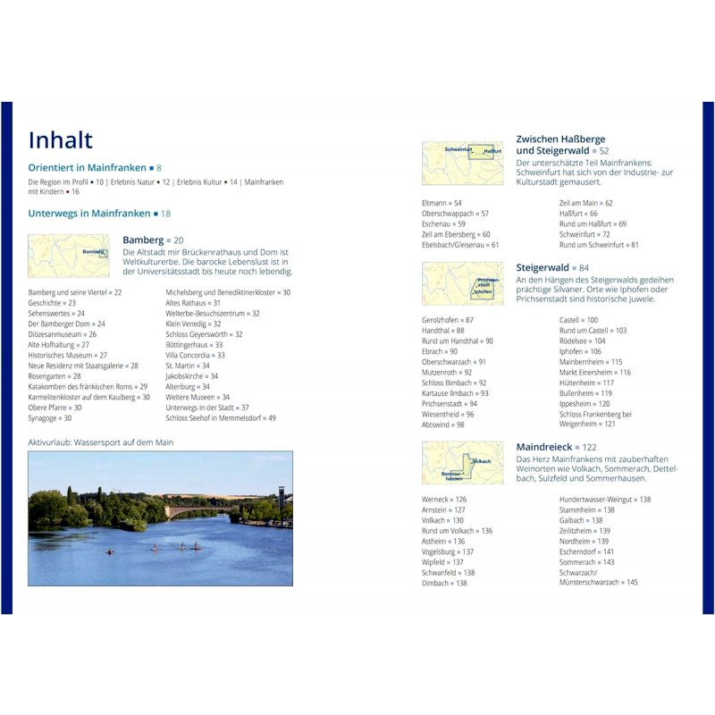Mainfranken und Bamberg im Überblick: Ausgangspunkt ist die prächtige Altstadt Bambergs - mit Brückenrathaus und Dom gehört sie zum UNESCO-Weltkulturerbe. Die Universitätsstadt überzeugt mit lebendiger barocker Pracht und Lebenslust. Touristisch noch relativ unberührt sind nordwestlich von Bamberg Haßberge und Steigerwald mit dem von der Industrie- zur Kulturstadt gewandelten Schweinfurt. Weinliebhaber finden ihr El Dorado an den Hängen des Steigerwalds südwestlich von Bamberg. Der bekömmliche und geschmacklich vielfältige Silvaner lässt historische Juwele der Region wie Iphofen oder Prichsenstadt noch mehr funkeln. Vertrauen Sie den Geheimtipps des Autors, Sie werden garantiert nicht enttäuscht!