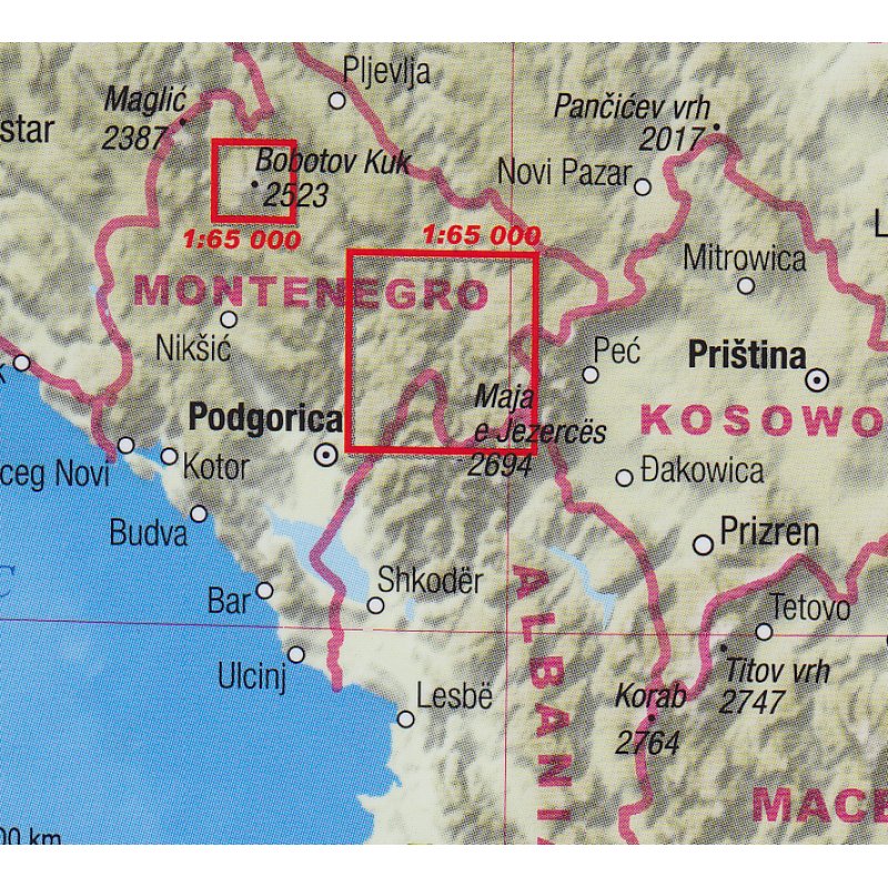 Eine exzellente, sehr komfortabel zu handhabende Wanderkarte der Region Montenegro Mountains. Sie enthält eine Legende in sechs Sprachen: Englisch, Deutsch, Französisch, Spanisch, Italienisch und Polnisch.