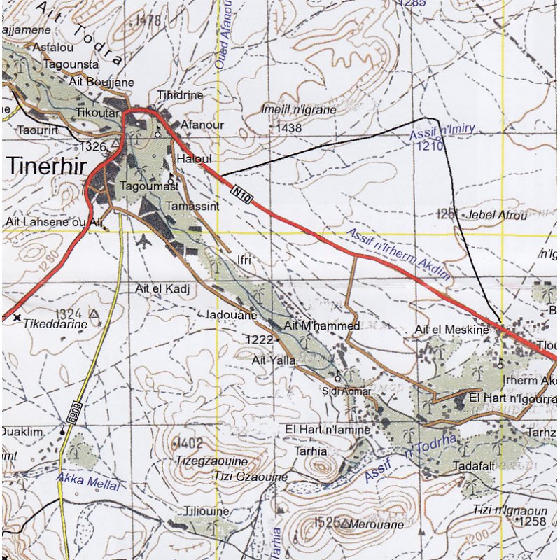 Full colour topographical map covering the Tinerhir, Dades & Todra Gorges and neighbouring regions.