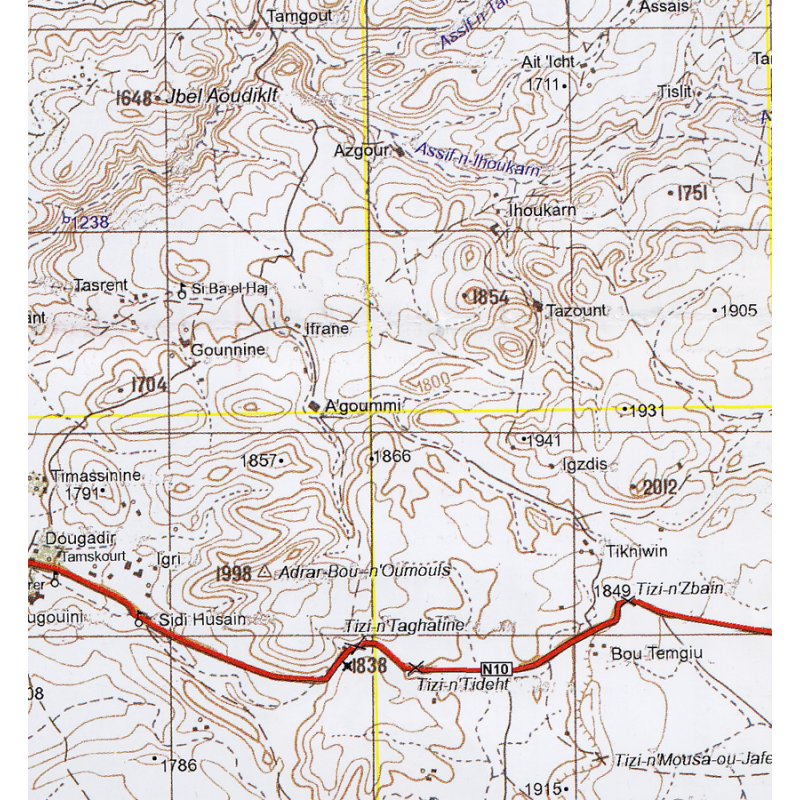 Full colour topographical map covering the Tazenakht, the Eastern Anti-Atlas and neighbouring regions of the High Atlas.