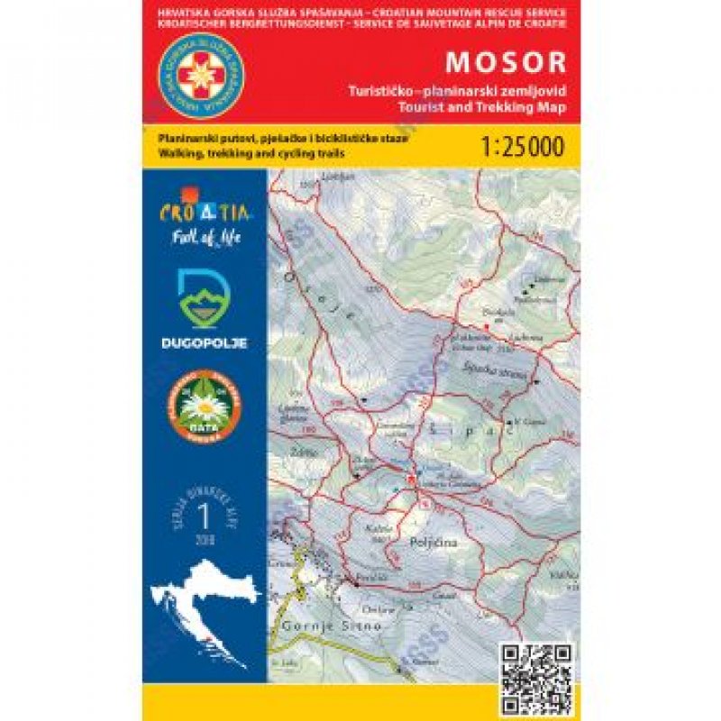 Detaillierte topographische Wanderkarte Kroatien mit eingezeichneten Wanderwegen und Radwanderwegen sowie touristischen Informationen. Die Landkarte ist GPS-kompatibel (WGS84). Legende auch auf deutsch.