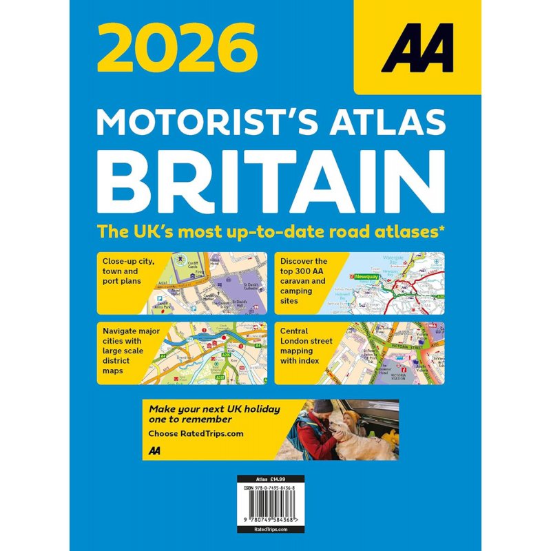 This A4 format spiral bound road atlas provides super-clear mapping from the experts at the AA at 4 miles to 1 inch. Each page has been titled with its geographical location so you can turn to the page you need more easily. Wide minor roads (more than and less than 4m wide), National Trust, English and World Heritage, other hard-to-find places are also shown. Includes 70 city, town and port plans and 10 pages of central London mapping with index. District mapping of Birmingham, Glasgow, Manchester, London and Newcastle. A comprehensive 31,500 entry index with airports, top tourist sites and motorway services listed. The ferry port plans are inset on the mapping for ease of reference. Scenic routes, tourist sites and the top 300 AA-Inspected caravan and camping sites are symbolized on the mapping. Great for helping to navigate your route or as the perfect back up to a satnav.