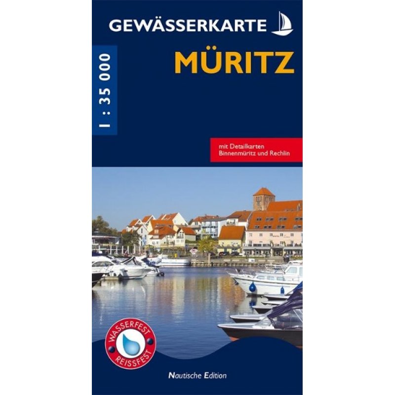 Die Müritz ist nicht nur Deutschlands größter Binnensee - sie ist mit ihrer Umgebung auch ein Inbegriff für eine zauberhafte Natur, klares und sauberes Wasser und ein vielfältiges touristisches Angebot. Nicht zu unrecht zählt diese Gegend zu einer der schönsten und abwechslungsreichsten Touristenregionen in Deutschland, welche insbesondere für Binnenschiffer, ob motorisiert oder unter Segeln, ein wahres Eldorado darstellt. Wer einmal die Müritz-Region vom Wasser aus erlebt hat, kommt gewiss gern wieder her. Neben der herausragenden Landschaft, mit der einzigartigen Flora und Fauna des Müritz-Nationalparks bietet die Region viel Wissens- und Erlebenswertes aus Kultur und Geschichte. Reich an Sehenswürdigkeiten sind die Städte Waren, Röbel, Rechlin und Mirow, aber auch solche Kleinode wie Federow, Boek, Sietow, Ludorf, Bollewick und Solzow. Und das Schöne daran ist - rund um die Müritz finden Wasserwanderer eine sehr gut ausgebaute maritime Infrastruktur vor und so lässt sich die ganze Region sehr gut per Boot oder Yacht erkunden. Die Gewässerkarte ist der erste Titel der "Nautische Edition" und richtet sich insbesondere an die Zielgruppe der "Freizeitkapitäne" auf Deutschlands größtem Binnensee. Die im Maßstab 1:35.000 dargestellte Karte wurde nach geographischen, landschaftlichen und touristischen Aspekten erarbeitet. So reicht der Blattschnitt incl. Nebenkarte von Waren an der Müritz im Norden bis nach Buchholz und Mirow im Süden. Westlich reicht sie bis Sietow und Kambs und um Osten bis Schwarzenhof und Boek. Zusätzlich sind die Regionen rund um die Binnenmüritz und den Claassee im detailgetreuen Maßstab 1:10.000 kartiert. Die Gewässerkarte "Müritz" enthält neben den Wassertiefen, Betonnung, Wasserstraßen, Yachthäfen und Gewässernamen alle wichtigen Informationen zur maritimen Infrastruktur.
