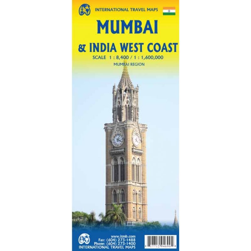 Doppelseitige aktuelle Straßenkarte für die Westküste Indiens mit Ortsverzeichnis. Die Rückseite enthält einen Innenstadtplan 1:12.000 sowie eine kleine Umgebungskarte von Mumbai (Bombay).