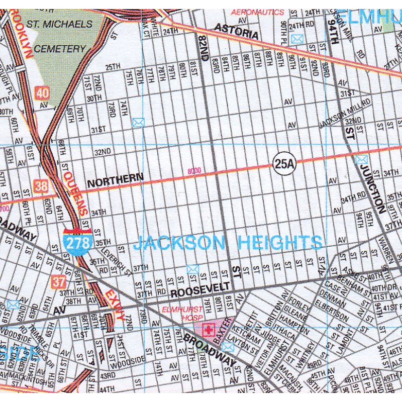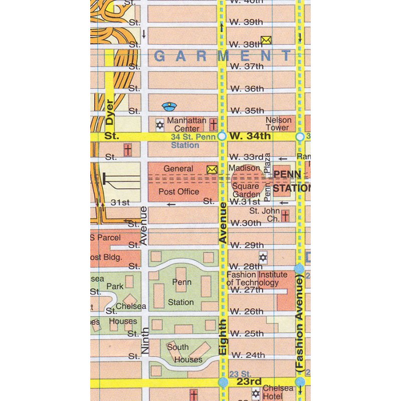 - enthält: Bronx, Brooklyn, Manhatten, Queens, Staten Island, Enlargement of Manhatten, John F. Kennedy International Airport, La Guardia Airport, Newark Airport, plus New York vicinity map