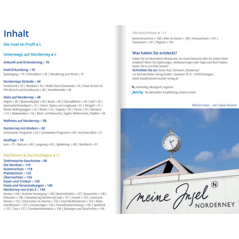 Reisepraktische Tipps: 16 Seiten Norderney von A-Z verraten alles Wichtige, damit Ihr Aufenthalt auf Norderney ein gelungenes Erlebnis wird. Ob Einkaufen, Ärzte, Busverkehr, Lesetipps oder Anreise mit Flugzeug, Zug oder Fähre Norderney lernen Sie mit unserem Reiseführer »Norderney« so gut kennen wie die Einheimischen.