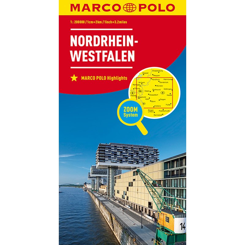 Hauptkarte im Maßstab 1:200 000; Index: mehrsprachige Legende (D, GB, F, NL, I, E, CZ, PL)/ 10 Durchfahrtspläne 1:100 000 und dazugehörige Citypläne 1: 20 000: - Aachen - Bielefeld - Bochum - Bonn - Dortmund - Duisburg - Düsseldorf - Essen - Köln - Münster/ 9 Sonderkarten: - Flughafen Dortmund - Flughafen Düsseldorf - Flughafen Köln - Flughafen Münster-Osnabrück - Flughafen Paderborn-Lippstadt - Messe Dortmund - Messe Düsseldorf - Messe Essen - Messe Köln/ Verkehrsinformationen/ Entfernungstabelle/ Blattübersicht/ Ortsregister mit Bundesland, Postleitzahl und Suchfeldangabe