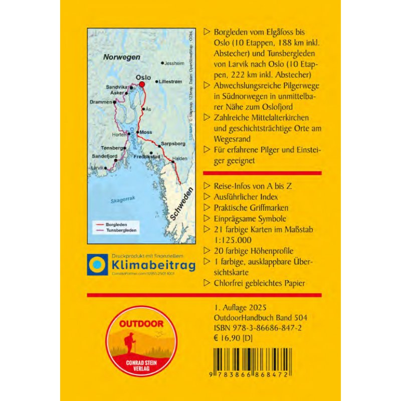 Die beiden südlichsten Pilgerwege Norwegens führen am Oslofjord entlang bis nach Oslo, der 188 km (inkl. Abstecher) lange Borgleden am Ostufer durch die Region Østfold und der 222 km (inkl. Abstecher) lange Tunsbergleden am Westufer durch die Region Vestfold. Ziel beider Wege ist die Ruine der Hallvardskathedrale in Oslo, Sie können Ihren Weg von dort aus aber auch bis zum Nidarosdom in Trondheim fortsetzen. Wandern Sie auf den Spuren des hl. Hallvard und des hl. Olav durch reizvolle Landschaften und entdecken Sie dabei kleine Naturparadiese sowie ein reiches kulturelles Erbe. Abseits der großen Pilgerströme führen die beiden gut erschlossenen, aber noch wenig bekannten Routen in jeweils zehn überwiegend einfachen Tagesetappen zum Ziel. Sie verlaufen auf Schotterwegen, kleinen Straßen und Pfaden an Flüssen und Fjordarmen entlang, durch geschichtsträchtige Siedlungen und Städte, fruchtbare Felder, Wiesen und friedliche Wälder. Ausführliche Wegbeschreibungen, Übersichtskarten und Höhenprofile, wertvolle Übernachtungstipps sowie detaillierte Hinweise auf Sehenswürdigkeiten machen diesen Führer zu einem unentbehrlichen Wegbegleiter. Praktische Informationen zur An- und Abreise, zur Reisezeit und den Grundlagen des Pilgerns in Skandinavien helfen außerdem bei der Planung und Vorbereitung.