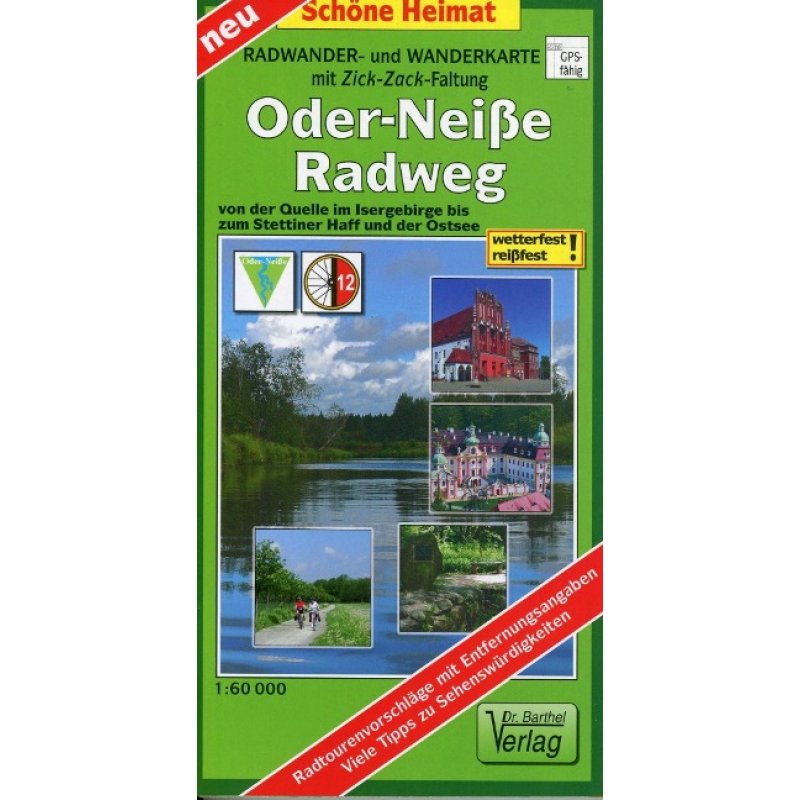 Radwander- und Wanderkarte mit Zick-Zack-Faltung Oder-Neiße-Radweg 1:60 000