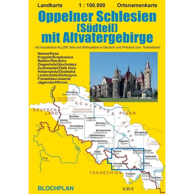 Die Landkarte „Oppelner Schlesien (Südteil) mit Altvatergebirge” ist als Vierte in der (bisher) auf 6 Karten angelegten Schlesien-Landkarten-Reihe im Maßstab 1:100.000 erschienen. Diese Landkarten zeichnen sich durch ihre Detailliertheit und die Darstellung vorhandener und verschwundener Inhalte aus, und können somit gut sowohl als Reiseunterlage aber auch für Entdeckungen am Küchen- oder Schreibtisch genutzt werden.