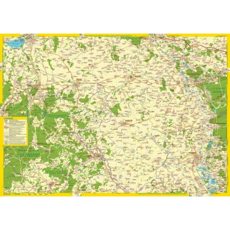 Die Karte zeigt im sowohl für Rad- und Autofahrer, als auch für andere touristisch Interessierte gut lesbaren Maßstab 1:100.000 detailliert alle wichtigen Sehenswürdigkeiten, alle Fern- und Landstraßen sowie die wichtigsten Stadtstraßen, dazu intakte, stillgelegte sowie abgebaute Eisenbahnstrecken und zur besseren Orientierung geschichtlich interessierter Nutzer neben den aktuellen auch die deutschen Kreisgrenzen von 1937.