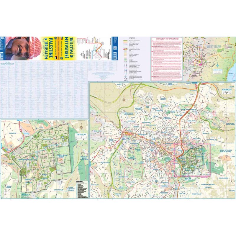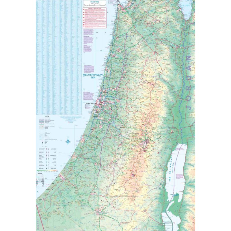 Description by ITMB: This is a new title for ITMB and the first time a separate map for that portion of the area known as Palestine and controlled by Palestinians has been published. This is essentially an attempt to show a political reality that exists, in that no one denies that both the West Bank and the Gaza Strip exist, albeit as a tightly-controlled entity that is not a country in the traditional sense of the word but is, nonetheless the homeland of millions of people and a self-governing entity. Jerusalem has been shown as an entity, without a border, in order to emphasize its importance as a unifying point of three great religions. Barricades do exist within the city, but these exist mostly to prevent clashes and reduce frictions, and we prefer to concentrate our hopes for Jerusalem as a future symbol of unity. Geographically, to fit both the southerly Gaza Strip area and the northerly West Bank portion together, it has been necessary to include large portions of Israel proper. The border has been shown for purposes of illustration only and in a generalized manner to represent reality and is not intended to indicate what would normally be a properly-defined border between nation states. This part of the world has been called Palestine since Roman times and until a more representative name can be created, we are stuck with using a name that is acceptably used to describe this part of the world. Sometimes, one has to go beyond what is comfortably safe and do something new. ITMB has been doing this since 1983; this is just another leap of faith.