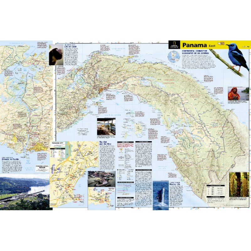 Designed for the needs of adventure travelers, National Geographic's Panama Adventure Map is the most comprehensive map available, covering the entire country, with expertly researched background information, travel tips and descriptions of popular destinations. A user-friendly index of selected towns and protected areas, including National Parks, nature and forest reserves, wetlands and wildlife areas, will help you select areas to explore. The marked road network of major and minor roads, including the Pan-American Highway, airstrips and railway tracks will get you to your desired location, including those outside of major tourist hubs. Some of the pinpointed recreational, historical and cultural features include areas for surfing, fishing and diving, hiking trails, archeological sites, reefs and mangroves.