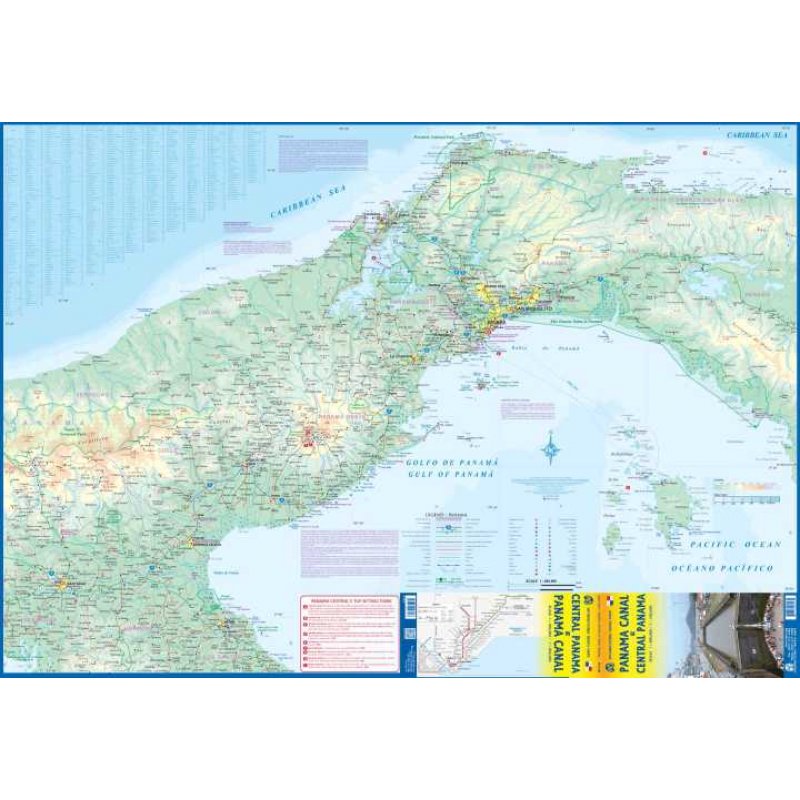 Description by ITMB: One of the world's great travel adventures is sailing through the Panama Canal, which we did last year (see cover photo). Panama itself is a large enough country that the canal, which is visited annually by millions of passengers, cannot be shown in meaningful detail. So, whether one is on board one of the many cruise ships squeezing into the Miraflores Locks or are a visitor ashore watching, the canal is a great attraction. The map is double-sided, with central Panama (the part most visited) filling side one. Side two is divided in half along the central fold. A very detailed map of Panama City fills the left side, and the first-ever map of the canal itself fills the other. This is a marvelously portrayed rendition of the most important canal in the world. Even at this scale, the locks themselves are thin lines on the sheet, but they're there.