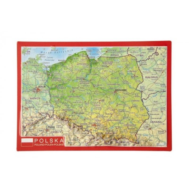 Auf der Bildseite befindet sich eine Polenkarte mit ''Hubbeln'' zum Fühlen und anschaulichem Erkennen der Höhenreliefs des Landes.