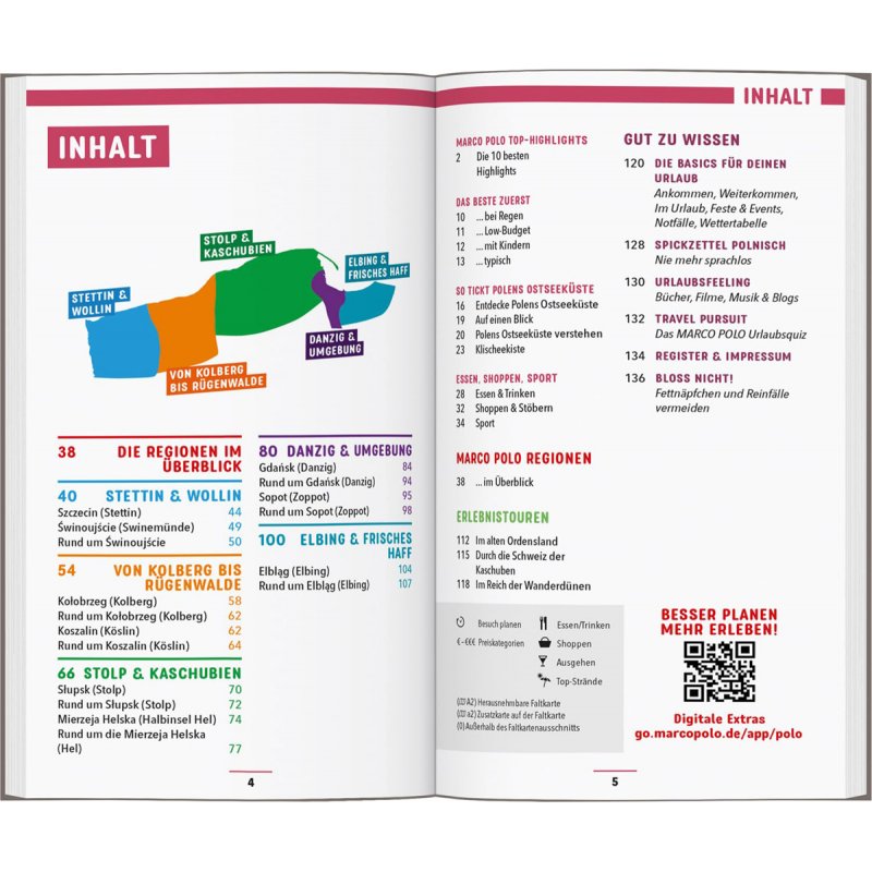 Ob Aktivurlaub in der Natur oder Städtetrip mit Kultur- und Architekturgenuss – die Region zwischen Stettin und Weichsel-Delta bietet für jeden das Passende. Begib dich im Wolliner Nationalpark auf die Suche nach brütenden Seeadlerpaaren, blicke vom Turm der Marienkirche über Danzigs Giebeldächer oder stürze dich im Surferparadies der Halbinsel Hel in die Wellen. Mit dem MARCO POLO Reiseführer für die polnische Ostseeküste stehen dir alle Möglichkeiten offen. Lass dich zu deinem Traumurlaub inspirieren!