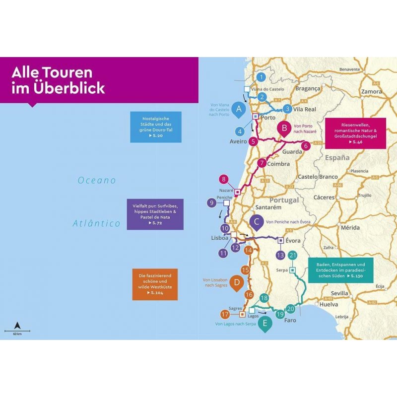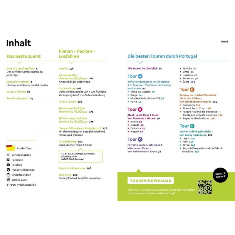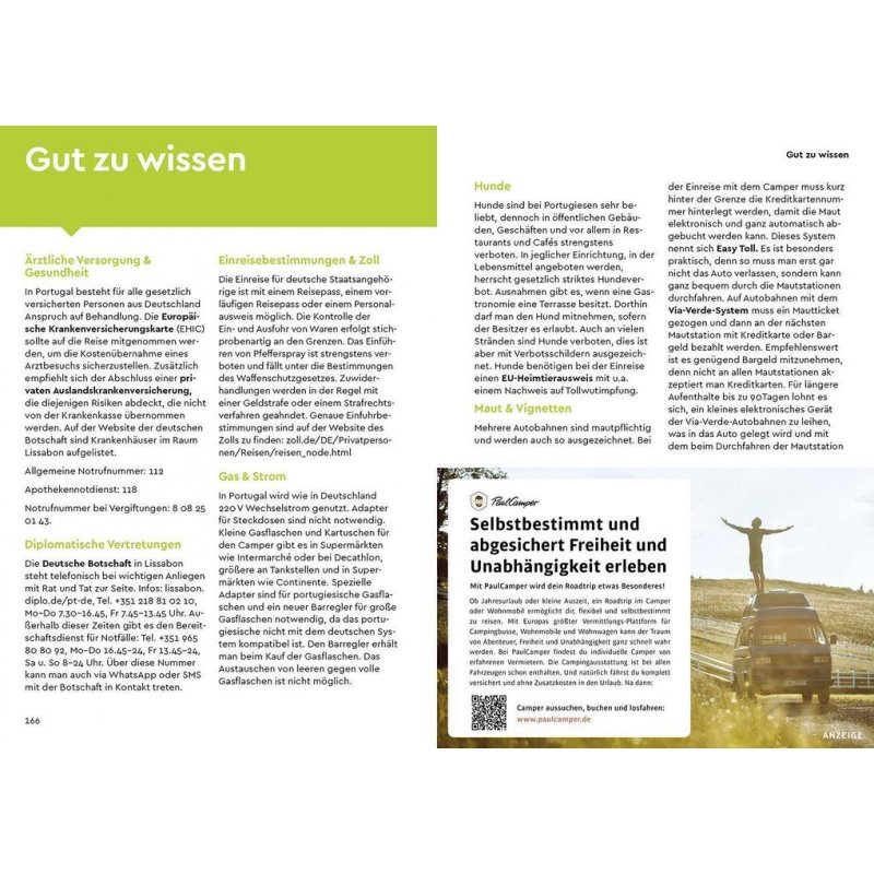 - Rundum- Sorglos-Paket: Wissenswertes zum Reiseziel wie das Freistehen, Anreiseinfos, Camper-Wörterbuch Portugiesisch, Camper-Packliste sowie Fahrzeugcheckliste