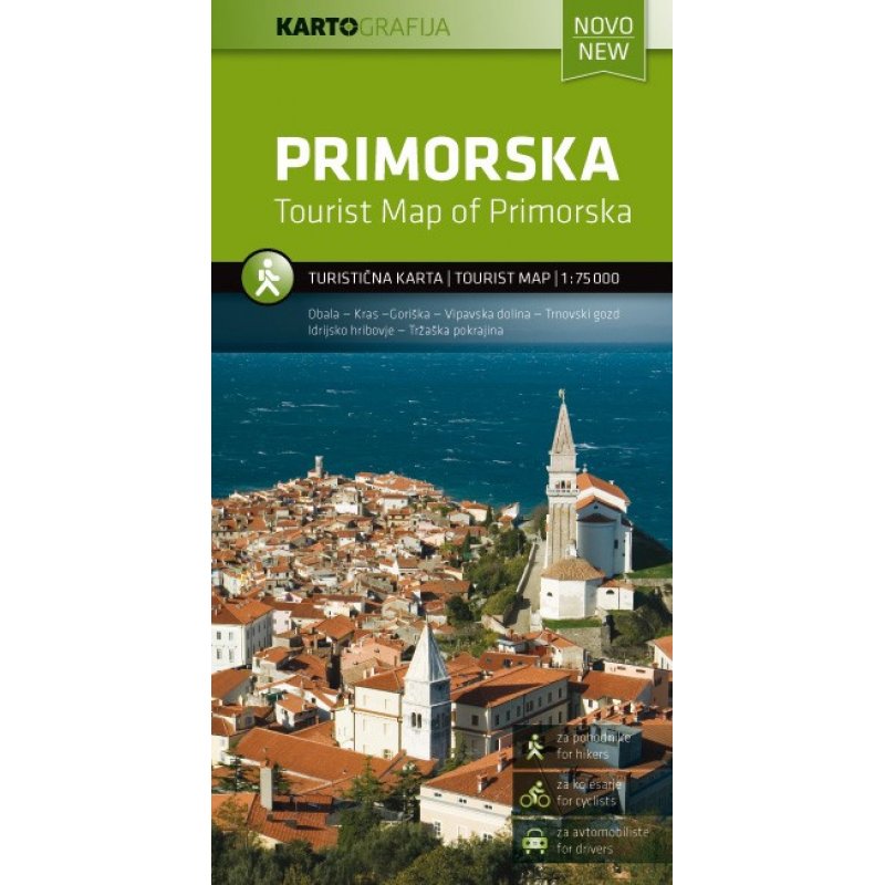 Wanderkarte Slowenien mit Wanderwegen und touristischen Informationen und Farbfotos auf der Kartenrückseite. Beschreibungen auch in englischer Sprache.