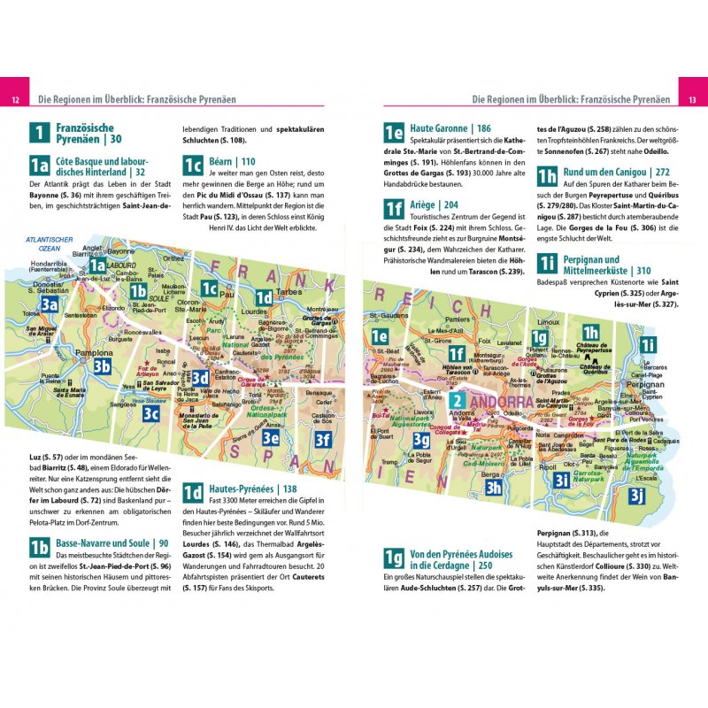 - Übersichtsseiten mit Beschreibungen aller Regionen in den frz. + span. Pyrenäen: Côte Basque, Basse-Navarre, Soule, Bèarn, Guipúzcoa, Pamplona, der Norden Navarras, Andorra u.v.m.