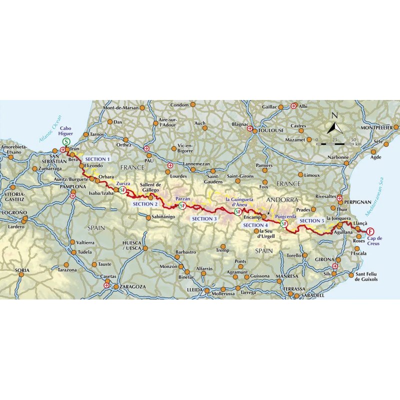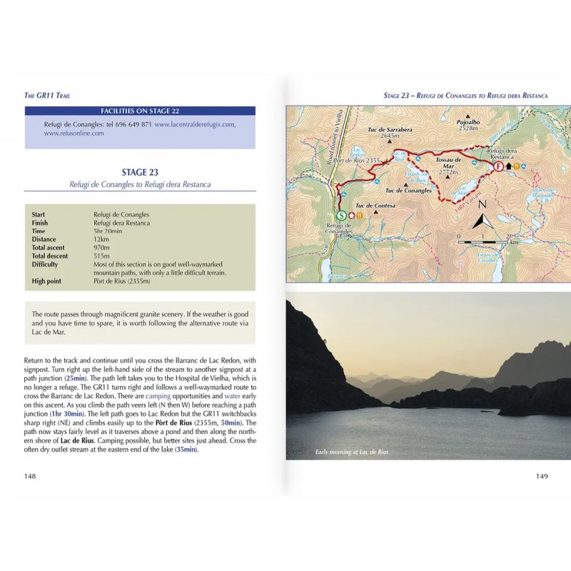 The GR11 is one of the long-distance trails which crosses the whole Pyrenees, staying on the Spanish side of the border. It is presented here in 47 stages of 7-31km (5-19 miles), four sections are given to allow the route to be broken into shorter treks.