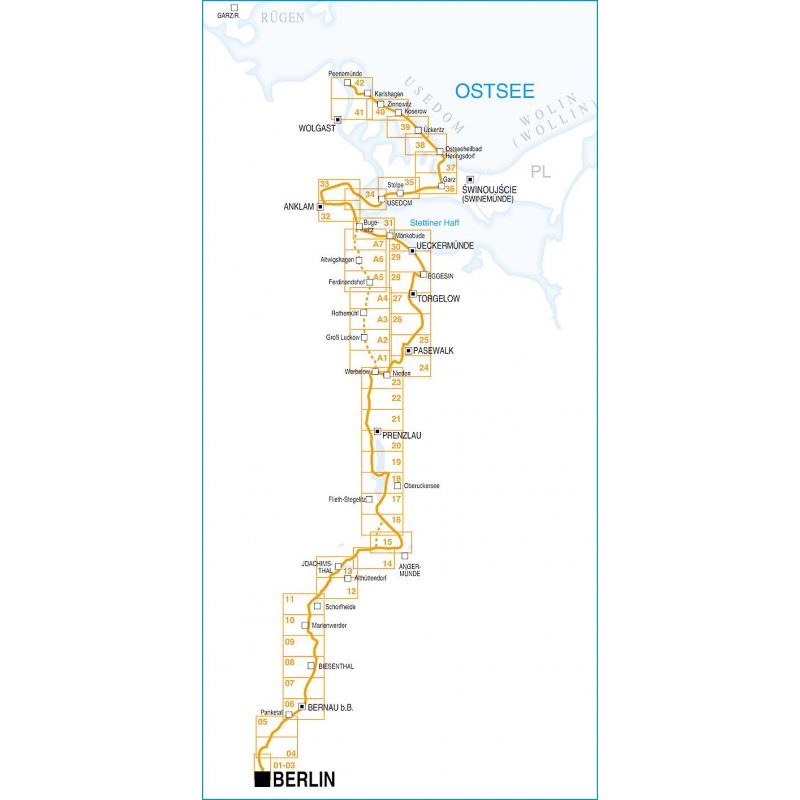 Von Berlin durch den Barnim, die Schorfheide und die Uckermark ans Stettiner Haff bis Peenemünde auf der Insel Usedom (mit Zick-Zack Faltung). Mit Wanderroutenempfehlung