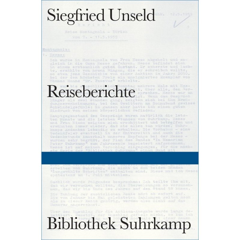 Zehn Tage nachdem Siegfried Unseld am 1. April 1959 die Leitung des Suhrkamp Verlags übernommen hat, reist er nach Ost-Berlin, um Brechts Witwe Helene Weigel zu besuchen. Zurückgekehrt, diktiert er den ersten der von ihm selbst so genannten Reiseberichte. In über 1500 Berichten hat er bis zu seinem Tod 2002 die für ihn und seine Mitarbeiter wesentlichen Resultate seiner Gespräche festgehalten. Die Weitergabe an Personen außer Haus war streng verpönt. Zum 70-jährigen Verlagsjubiläum wird das Betriebsgeheimnis nun gelüftet.Die spannenden Reportagen, darunter eindrucksvolle Schilderungen seiner Reisen nach Japan und Israel in den 1980er und 1990er Jahren, offenbaren einen Blick hinter die Kulissen des literarischen Lebens und bieten die einmalige Gelegenheit, den Aufbau des Suhrkamp Verlags aus der Sicht des Verlegers zu verfolgen. Sie dokumentieren die wichtigsten kulturellen Ereignisse innerhalb der letzten vier Jahrzehnte des 20. Jahrhunderts in Begegnungen zwischen Verleger und den für diese Zeit bedeutsamsten deutschen und internationalen Autoren mal dramatisch, mal entspannt urlaubend, mal kämpferisch.Die hier in Auswahl zum ersten Mal publizierten Reiseberichte Siegfried Unselds führen in die Welt des Verlegers und Verlegens mit all ihren Höhe- und Tiefpunkten, ihrem Glanz und Elend ob beim Geburtstag von Max Frisch in New York, mit Samuel Beckett in Paris, mit Peter Weiss in Kopenhagen, mit Jurek Becker in Leipzig, bei Ingeborg Bachmann in Rom, mit Amos Oz in Israel, mit Thomas Bernhard in Wien oder mit Peter Handke auf der ganzen Welt und zeichnen das Porträt der kulturellen Nachkriegsgesellschaft aus der Sicht eines ihrer wirkungsmächtigsten Akteure.
