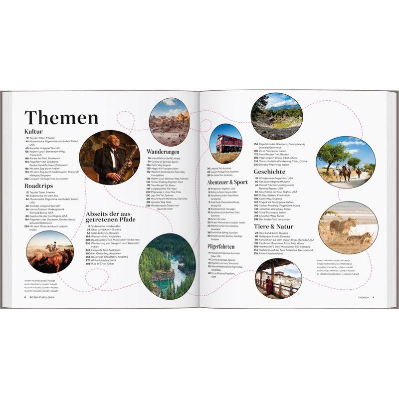 REFLEKTIEREN, NEUES LERNEN, zu sich selbst finden - Lonely Planet zeigt, wie sich Selbstfindung und Reisen verbinden lassen. Teste deine Limits auf einer Rafting-Tour durch den Grand Canyon, suche Erleuchtung auf einer schottischen Pilgerfahrt oder entschleunige auf dem Jeju Olle Trail in Südkorea. Mit stimmungsvollen Bildern und inspirierenden Texten entführt „Reisen fürs Leben″ schon von zu Hause aus in eine Welt der besonderen Erlebnisse und außergewöhnlichen Trips. Und die ganz bodenständigen Informationen gibt es natürlich auch: Praktische Kästen lassen wissen, wann die beste Reisezeit ist, was man auf die Reise mitnehmen sollte, wo gute Spots zum Übernachten sind und vieles mehr.