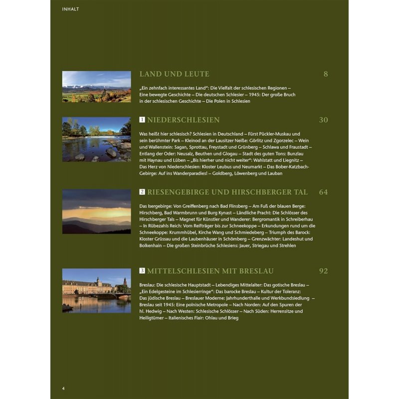 Roswitha Schieb beschreibt eine der bedeutendsten Kulturregionen Europas. Hunderte von Burgen und Schlössern erzählen hier von der wechselvollen Geschichte, das Riesengebirge ist ein Paradies für Naturfreunde und die schlesischen Städte - wie Görlitz, Breslau oder Kattowitz - begeistern mit einer faszinierenden Mischung aus Tradition und Moderne. Über 250 farbige Fotografien von Marek Maruszak begleiten den Text und machen schon beim Blättern Lust darauf, Schlesien zu entdecken. Für die neue Auflage wurde das Buch erweitert um einen Überblick über Schlesien heute und die Beziehungen zwischen Deutschland und Polen.