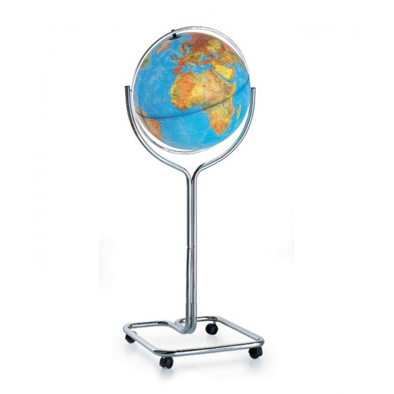 Dieser Globus wurde entworfen zum Gebrauch in Klassenräumen. Große, deutliche Beschriftung und Beweglichkeit durch die 4 Rollen machen die Handhabung leicht.