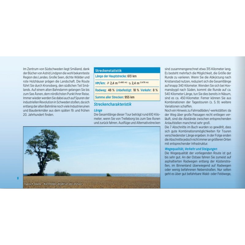 Vor Ihnen liegt eine Rundreise durch drei der südlichsten Provinzen Schwedens, in denen Sie auf glasklare Seen und strohblonde Kornfelder, rote Holzhäuschen oder verschwiegene Wälder treffen. In Skåne kontrastiert das Blau des Meeres eindrucksvoll mit den goldgelben Kornfeldern, in Blekinge radeln Sie durch die „südlichste Wildnis Schwedens“ und im südlichen Småland erleben Sie das verschlungene Wasserreich des großen Sees Åsnen. Reizvolle Radwege auf stillgelegten Bahntrassen atmen Zeitkolorit. Im letzten Drittel der Tour folgen Sie der Küstenlinie der Ostsee durch Österlen, die „Provence des Nordens“, mit weiten Obstplantagen, pittoresken Fischerdörfern und langen Sandstränden. Am Weg liegt mit Malmö die drittgrößte Stadt des Landes, nicht weit davon die alte Universitätsstadt Lund, die als kulturelles Zentrum des schwedischen Südens gilt. Für weitere Abwechslung sorgen alte Burgen und Schlösser, Badeseen sowie charmante Hafenstädte. Zusammen mit der Gastfreundlichkeit der Schweden und den kleinen und großen Gaumenfreuden unterwegs steht einer schönen Zeit nichts im Wege!