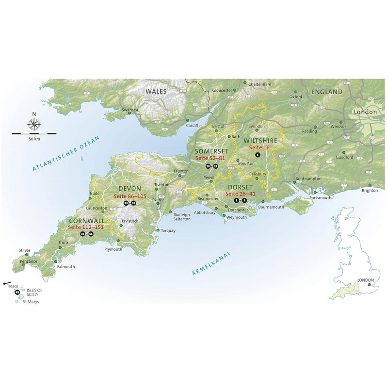 Im Südwesten Englands gibt es raues, karges Hochmoor, aber auch liebliche Kulturlandschaft sowie abwechslungsreiche Küstenstriche mit versteckten Buchten, langen Sandstränden und hohen Klippen.