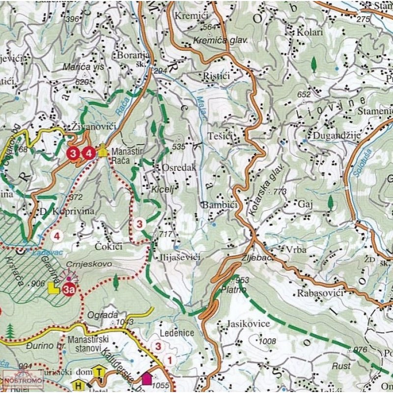 - Wanderkarte für den Tara National Park in den Dinarischen Alpen im Westen Serbiens