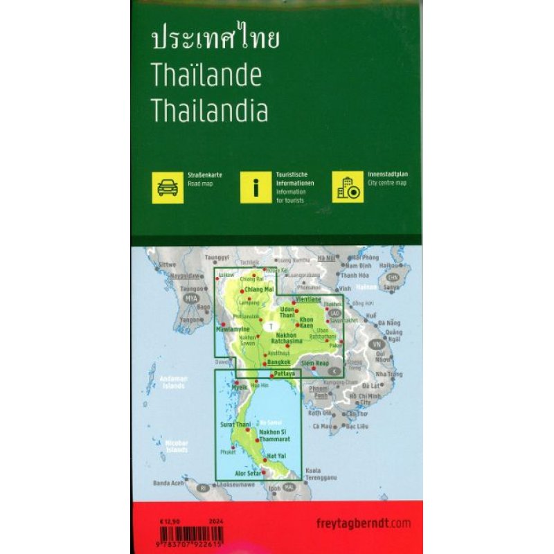 Neben der übersichtlichen Gestaltung verfügt die Straßenkarte Thailand, 1:900.000 über zahlreiche Zusatzinformationen wie z.B. Straßenbeschaffenheit, Sehenswürdigkeiten, Campingplätze und einen Innenstadtplan. Mit dem umfangreichen Ortsregister gelingt zudem eine rasche Orientierung. Details: Touristische Informationen, Cityplan Bangkok, Ortsregister, doppelseitig; freytag & berndt Autokarten sind für viele Länder und Regionen weltweit erhältlich.