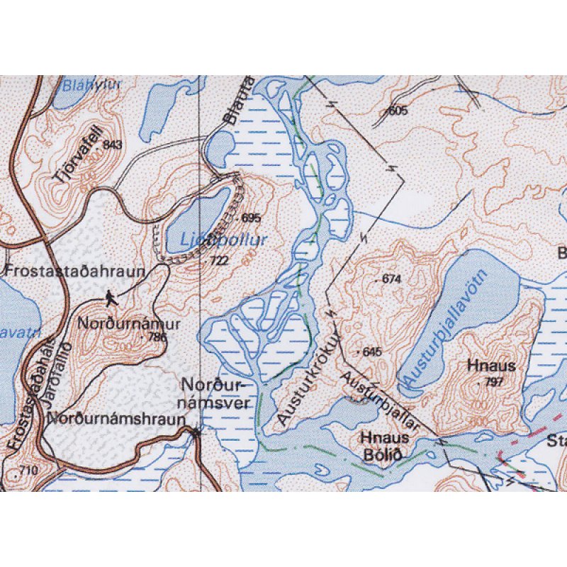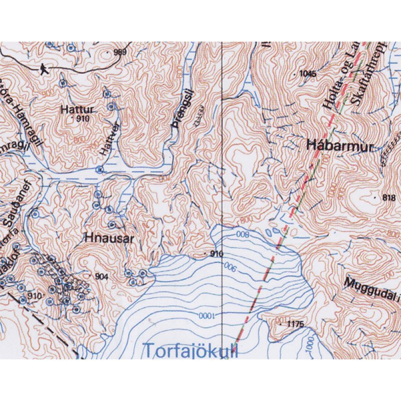 Sonderkarte von Þórsmörk/Landmannalaugar gibt einen guten Eindruck von Þórsmörk und der Umgebung und den Wanderrouten in Landmannalaugar. Die Karte enthält Wanderrouten über Fimmvörðuháls und gut gekennzeichnete Wege und Routen nach Fjallabak. Die Karte zeigt auch Hekla und das umliegende Lavagebiet. Alle Erklärungen sind in isländisch und englisch.