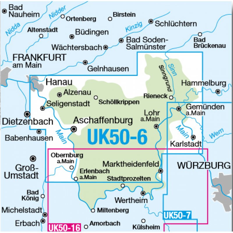 mit Aschaffenburg, Hanau, Karlstadt und Sinngrund
