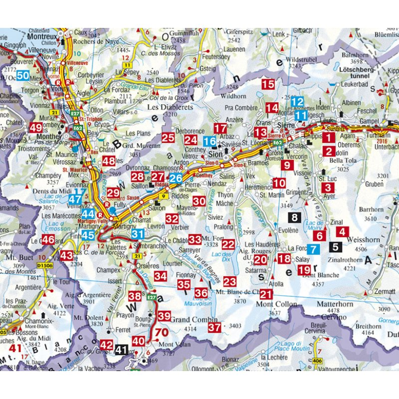 50 Höhenprofile, 50 Wanderkärtchen im Maßstab 1:50.000 und 1:75.000, zwei Übersichtskarten im Maßstab 1:600.000 und 1:750.00
