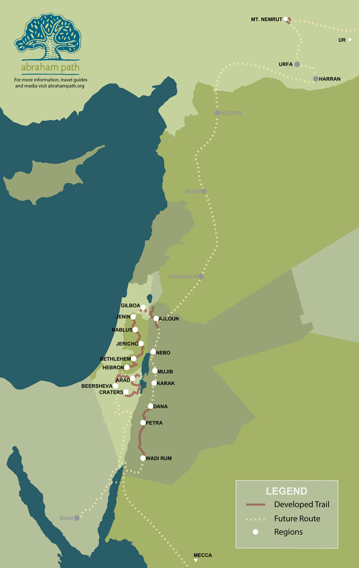 Im letzen Jahr wurde der Abraham Path von National Geographic als "Best New Walking Trail" vorgestellt. Aktuell erstreckt sich dieser Fernwanderweg über etwas mehr als 1000 km, führt durch 4 Länder und verbindet mehr als 100 Gemeinden im Nahen Osten.