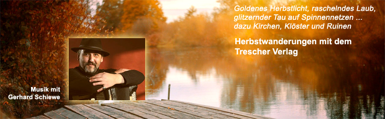Herbstwanderungen mit dem Trescher Verlag Besonders im Herbst wandert es sich sehr romantisch - z.B. auf dem 66-Seen-Wanderweg, in der Feldberger Seenlandschaft, entlang der ehemaligen deutschen-deutschen Grenze oder im Erzgebirge. Vier Autoren des Trescher Verlages stellen ihre Reise- und Wanderbücher von eben diesen Regionen vor. Andreas Sternfeld faszinierte die Idee, Berlin in mehreren Etappen auf dem 66-Seen-Wanderweg zu umrunden. Er ist Mitautor der neu erschienenen 9. Auflage dieses Wanderführers. Kristine Jaath hat sich als Reiseführer-Autorin unter anderem auf Brandenburg spezialisiert und wird ihren neuen Trescher Führer „Feldberger Seen“ und den erst in einigen Wochen neu erscheinenden Brandenburg-Reiseführer vorstellen. Anne Haertel wanderte entlang des Grünen Bandes von Travemünde bis zum Dreiländereck bei Hof. Das Grüne Band, die ehemalige deutsch-deutsche Grenze, ist der größte Biotopverbund Deutschlands mit 150 dazugehörigen Naturschutzgebieten. Anne Haertel hat den Weg in zwei Teilen beschrieben und im Trescher Verlag veröffentlicht. (Leider musste Anne Haertel aus wichtigen Gründen kurzfristig absagen, daher übernimmt Sabine Fach - Lektorin im Trescher Verlag - die Lesung aus dem Wanderführer "Grünes Band") Frieder Monzer, ein profunder Kenner des Erzgebirges, beschreibt in seinem Ratgeber „Erzgebirge“ sowohl die sächsische als auch die böhmische Seite des gesamten Gebirges. Für die musikalische Untermalung unserer Veranstaltung sorgt der Künstler Gerhard Schiewe mit seinem Akkordeon. Wir lassen ihm freies Spiel, um die einzelnen Vorträge charmant voneinander zu trennen. Die Veranstaltung findet draußen vor unserer Buchhandlung statt. Bitte denken Sie an entsprechende Kleidung.