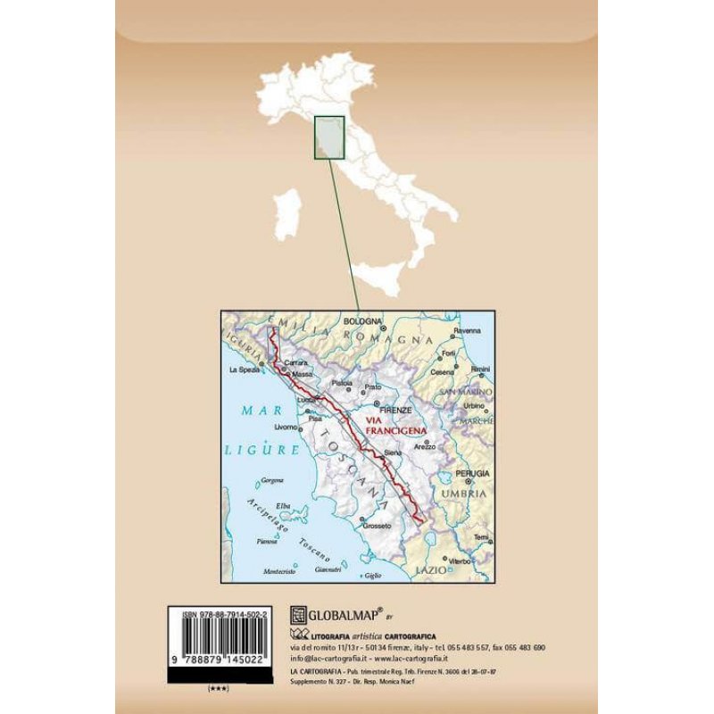- Enthaltene Orte: Pontremoli, Massa, Sarzana, Lucca, Altopascio, San Miniato, Gambassi Terme, San Gimignano, Siena, Radicofani, Acquapendente.