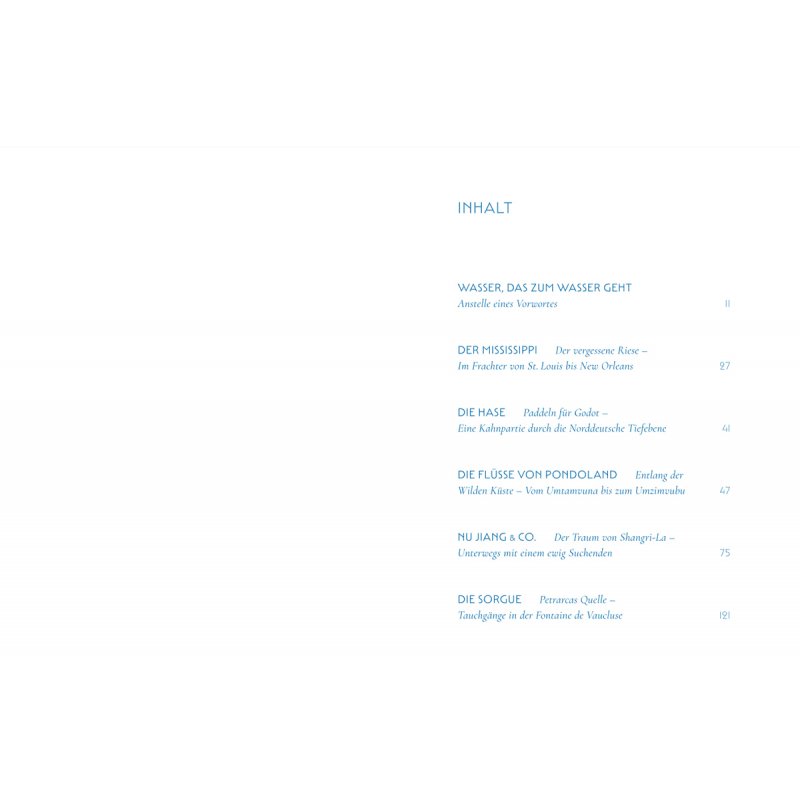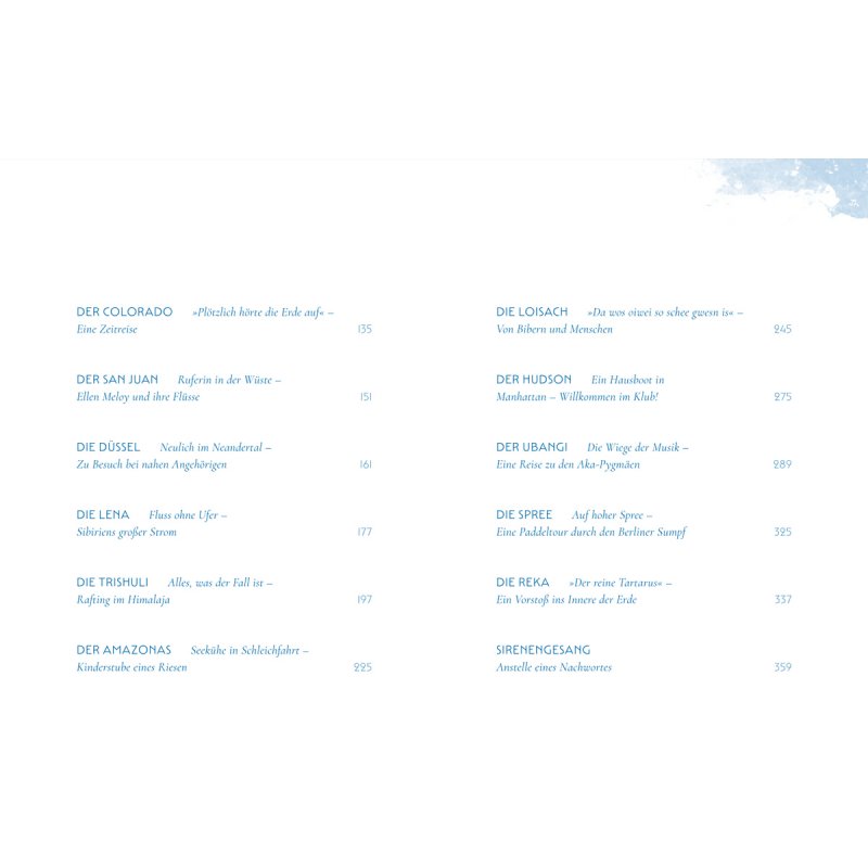 Seine Erzählungen mäandern und strömen. Er sucht das Wesen des Wassers zu ergründen und sondiert weltweit Beispiele für einen zeitgemäßen Umgang mit Natur. Voller Neugier verweilt er bei den Menschen, die an den Ufern leben. Und so bekommt man größte Lust, es ihm gleichzutun und fortzureisen an den nächsten Fluss – oder in weite Ferne.