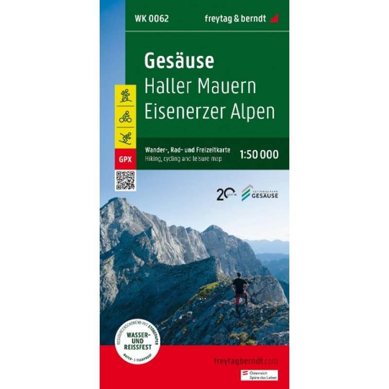 Gesäuse, Wander-, Rad- und Freizeitkarte 1:50.000, freytag & berndt, WK 0062 Haller Mauern - Eisenerzer Alpen, mit Infoguide, GPX Tracks, wasserfest und reißfest