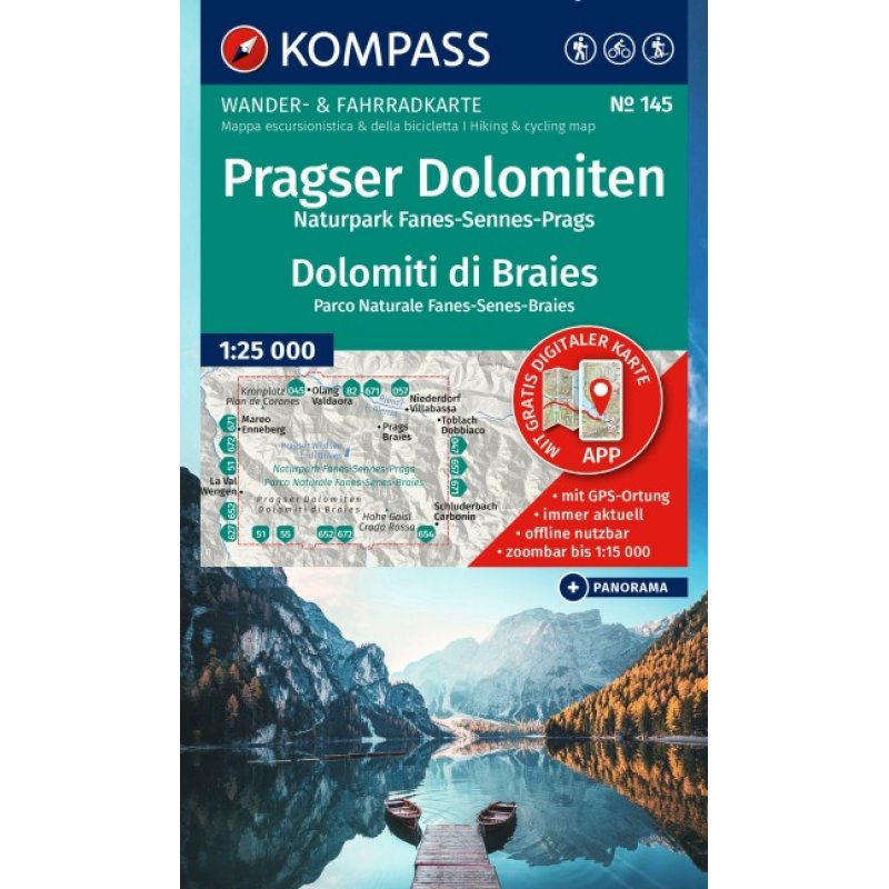 WK 145 Pragser Dolomiten, Naturpark Fanes-Sennes-Prags, Dolomiti di Braies, Parco Naturale Fanes-Senes-Braies 1:25.000