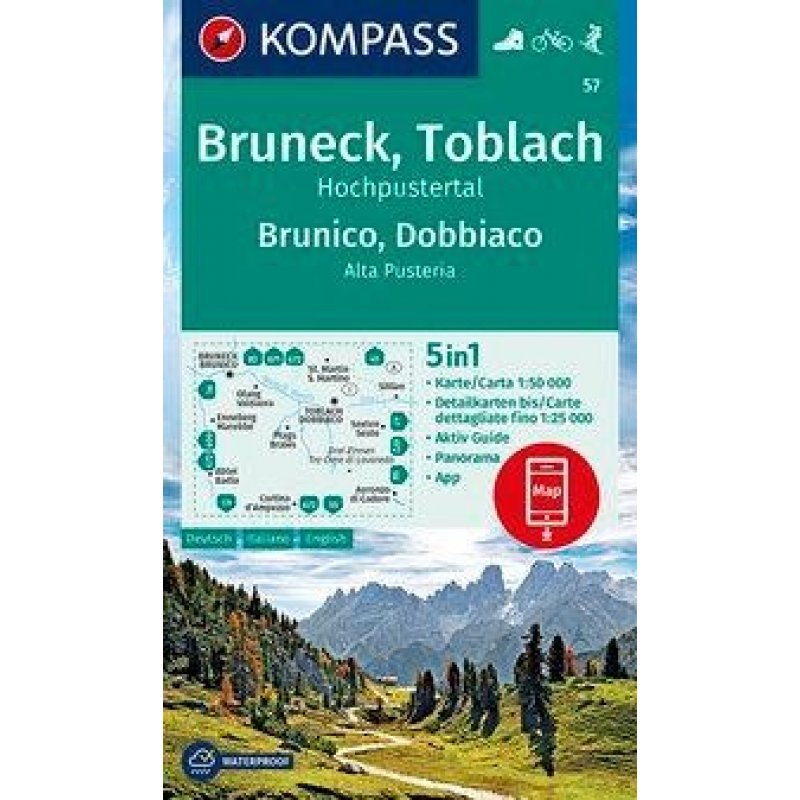 KOMPASS Wanderkarte 57 Bruneck, Toblach, Hochpustertal, Brunico, Dobbiaco, Alta Pusteria 1:50.000