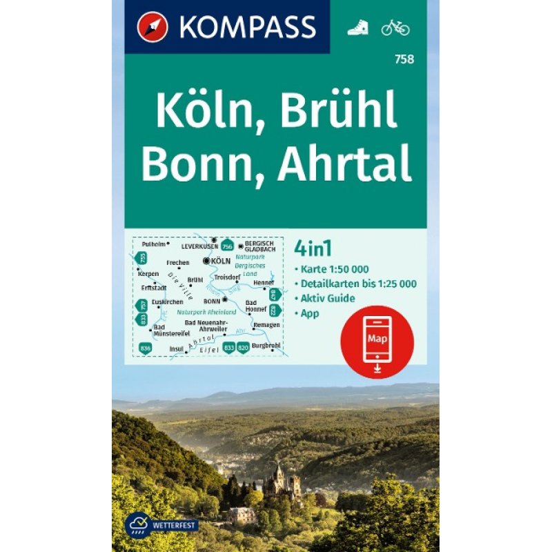 KOMPASS Wanderkarte Köln, Brühl, Bonn, Ahrtal 1:50 0004in1 Wanderkarte 1:50000 mit Aktiv Guide und Detailkarten inklusive Karte zur offline Verwendung in der KOMPASS-App. Fahrradfahren.